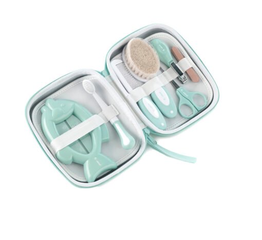 Descubre el práctico y elegante set de higiene en color menta de la reconocida marca Jané. Diseñado especialmente para ofrecer todo lo necesario en cuidado personal, este estuche combina funcionalidad y estilo en cada detalle. Perfecto para padres que buscan calidad y comodidad, el set incluye múltiples herramientas que garantizan el bienestar del más pequeño del hogar.