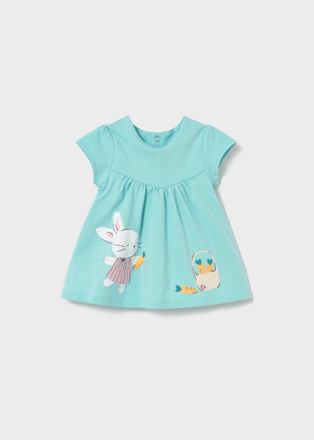 Este vestido ligero en color azul con un encantador estampado de conejo y su cestita en varios colores es la elección perfecta para los más pequeños. Su diseño sencillo pero visualmente atractivo lo hace ideal para cualquier ocasión casual.